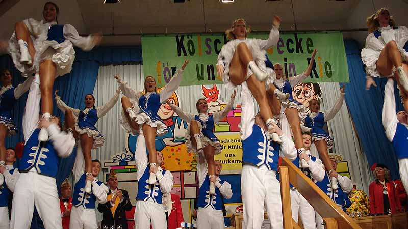 Wieder eine klasse Leistung legte das Tanzkorps Sr. Tollität Luftflotte aufs Parkett. Man kann die Kameradschaft und Geschlossenheit dieser Truppe in ihren choreografisch perfekten und ausdrucksstarken Tänzen förmlich spüren. Eine der besten Tanzgruppen, die den Kölner Karneval bereichern und deren Akrobatik nur die Saaldecke zu begrenzen scheint. |
